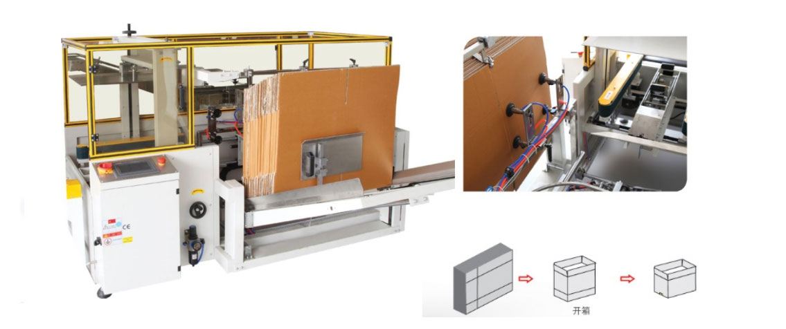 全自动装箱线 自动开箱结构:能自动进行纸箱开箱、底部折叶折曲、箱底胶带粘贴、输出等功能,经济又高效。