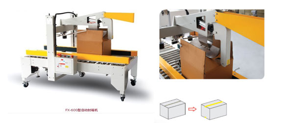 自动封箱结构:能自动进行纸箱上部内部折叶折曲,胶带粘贴封箱。